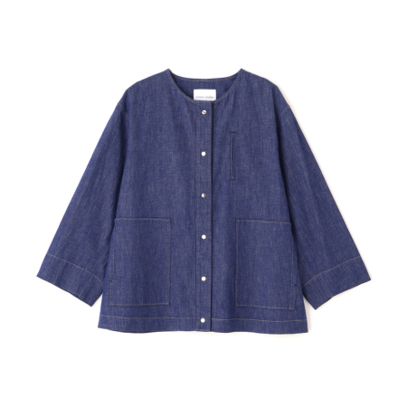 マリンデザインの効いたライトオンスデニムタックスカーチョです。ステッチを微配色でさりげなくカジュアル感を出しています。同素材のブラウスとのセットアップもおすすめです。