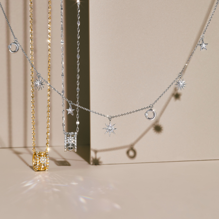 太陽、月、星のモチーフがひとつになった、スペシャルなデザインの”MOON&SUN”。 ダイヤモンドをあしらって高級感がありながらも、大人の遊び心があるシリーズ。