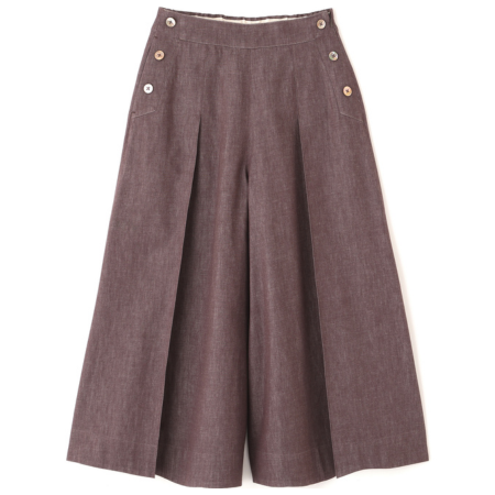 ダブルタックの綿麻デニムワイドパンツです。ポケットとベルトルーループに繊細なデザインを施してポイントにしています。すっきりシルエットのワイドパンツはリラックスした履き心地となっております。