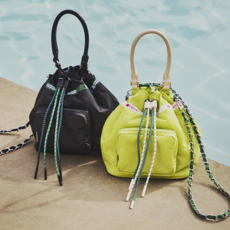 印象的なカラーリングがコーディネートに映える「Drawst Chain Bag」。巾着型のフォルムに、シンセティックレザーのハンドルとチェーンストラップ、鮮やかな2本のカラーコードを組み合わせ、カジュアルながらも洗練された印象に。500mlのボトルが収納できるサイズ感です。チェーンストラップは取り外し可能で、手持ち、肩掛け、クロスボディと様々なスタイルで楽しめます。