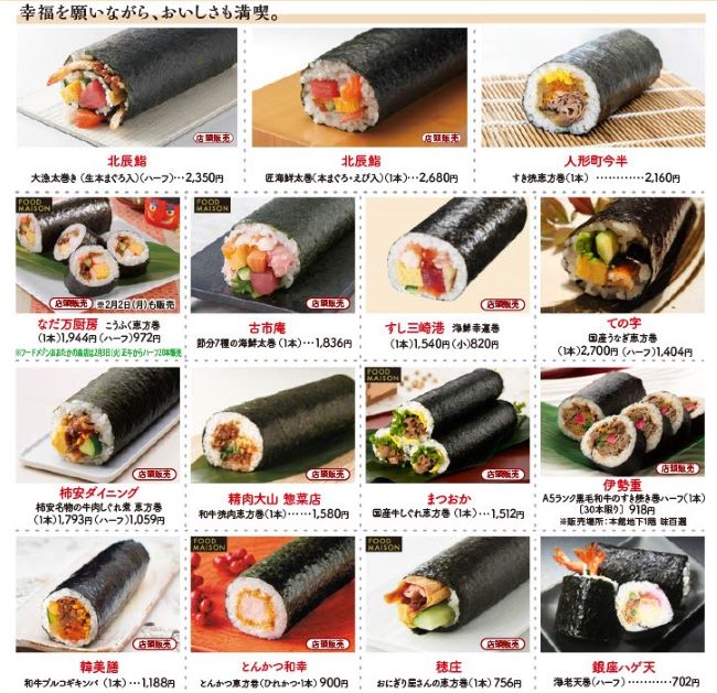 1回のご注文で1種類の恵方巻のみご予約いただけます。