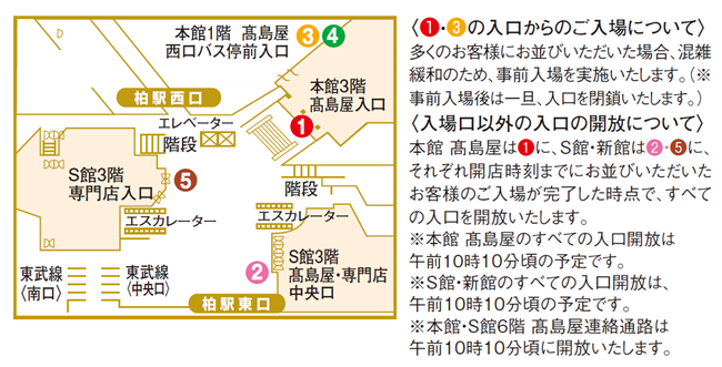 柏高島屋ステーションモール 1月3日(土) 開店時のご入場案内