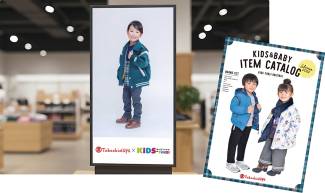 さらに、フォトデータorポスターセットご購入で… カタログの1/4ページに加えて、フルページで掲載させていただきます。また、ベビーキッズフロアで放映するデジタルサイネージに掲載させていただきます。
