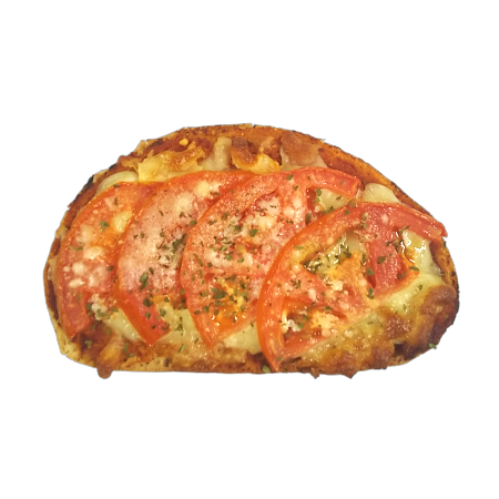 ジェノベーゼソース、生の熊本県産トマト、ベーコン、チーズをトッピングしたピッツア風のフォカッチャです。