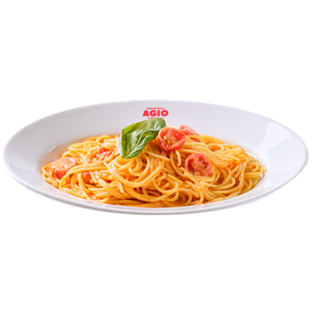 ミニトマトをたっぷり使い甘酸っぱく濃厚なトマトクリームソースに仕上げました。数種のハーブとの相性が食欲をそそります。