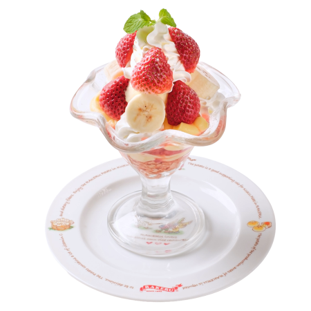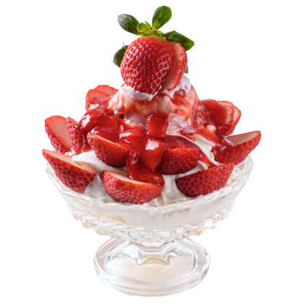 みずみずしいいちごに、バニラアイスとカスタードとイチゴソースで仕上げた贅沢パフェ。満足感たっぷりの一品です。