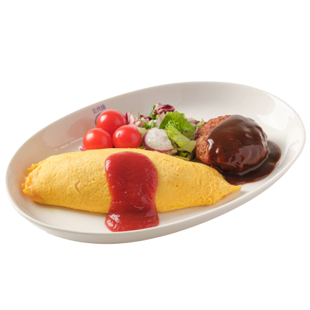 たいめいけん定番のオムライスとハンバーグや揚げ物とのコラボメニュー。