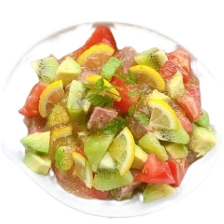 - 熊本県産トマト入りローストビーフとアボカドのジュレ仕立て(100g) 686円