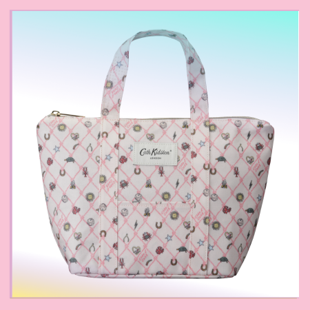 ロープで描いたひし形のパターンが印象的な遊び心あるプリントのクーラーバッグ。 繊細な柄表現とやさしい色使いが、日常のワンシーンにさりげない華やかさを添えます。 内側にはアルミ素材を使用し、クーラーバッグとして使用可能。普段のお買い物はもちろん、プールやビーチのレジャーシーンでも活躍します。