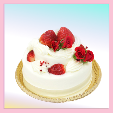 2段のかわいらしいデコレーションケーキにバラを飾った母の日限定ケーキです。