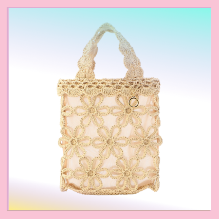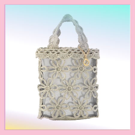 昨年好評だったペーパーフラワーバッグ。今年は新しくクリームとシルバーグレーの2色を展開。 見た目以上に高い収納力で、長財布、ポーチやペットボトルが入り、おでかけにも大変便利にお使いいただけます。