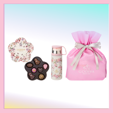 “ありがとう”の気持ちを伝えるギフトセット。春らしい色とりどりの花を表現したフラワー形のパッケージの心躍るチョコレートの詰め合わせとオリジナルデザインのステンレスボトルをセットにしました。