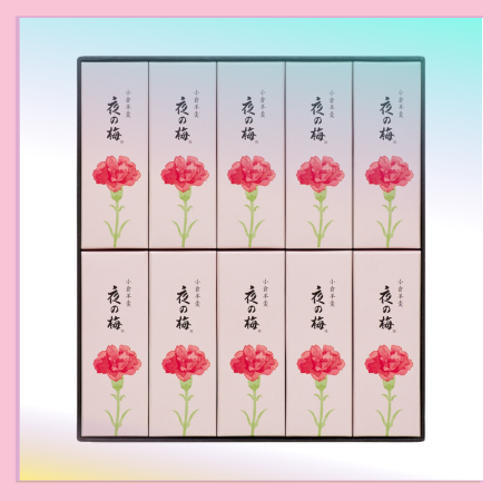 母の日パッケージ小形羊羹『夜の梅』10点を詰め合わせました。