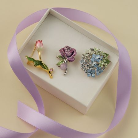 うるわしい春の花々を繊細に表現したブローチ。 美しい色のグラデーションは、職人がひとつひとつハンドペイントで仕上げたもの。 まるで香りが漂ってきそうな、花本来の美しさを忠実に再現した、クラフトマンシップに溢れるコレクションです。