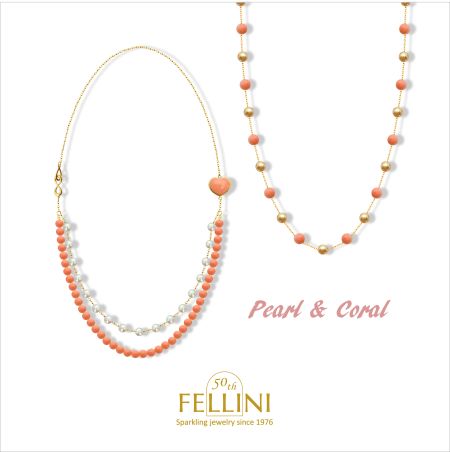 パールとサンゴの春めくカラーで首回りから春を演出できるネックレスです。