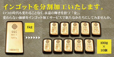 お持ちの1kgのインゴットを100gのSGCオリジナルバー×10個に加工いたします。