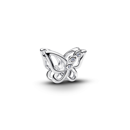 ほとんどのジュエリーにリサイクルシルバーが使用され「世界で最もサステナブルな企業100社」に選ばれた[パンドラ]。 バタフライチャームは、きらめくクリアなキュービックジルコニアをあしらい、成長、優雅さ、飛び立つ自由の美しさを表現しています。