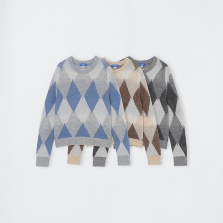 上品でトラッドな印象を与えるアーガイル柄のニットプルオーバーです。ヘアリーな素材を使用し、重くなりすぎず、様々なアイテムに合わせやすくコーディネイトしやすい色目で揃えました。