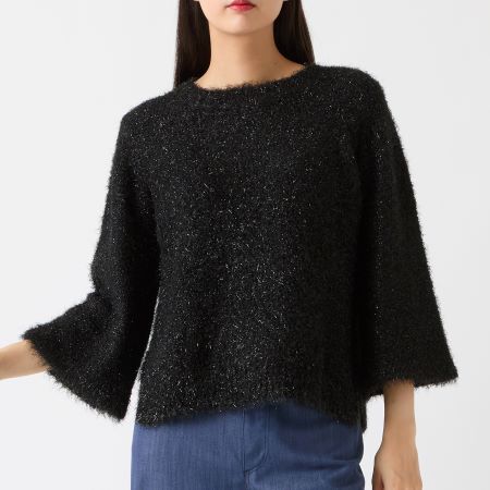 モヘアのシャギー感にラメフィルムの光沢で華やかさをプラス。