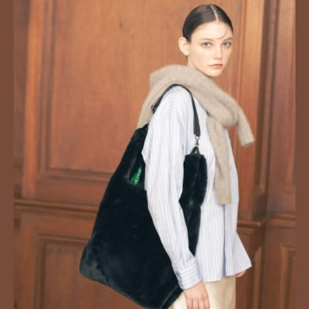 ふわふわのエコファー素材が、秋冬のコーディネートを華やかにしてくれるアイテム。 ブラックにはグリーン、レオパードにはオレンジのビビットな裏地の配色使いもポイント。2色4型のラインナップです。
