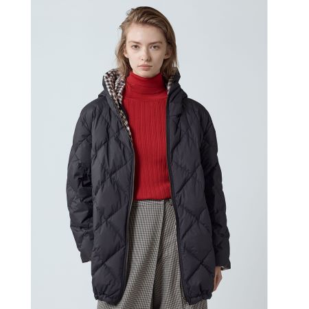 ダイヤ柄を施した無地・ステッチレスのクラブチェックと異なる雰囲気をお楽しみいただけるリバーシブルダウンコート。