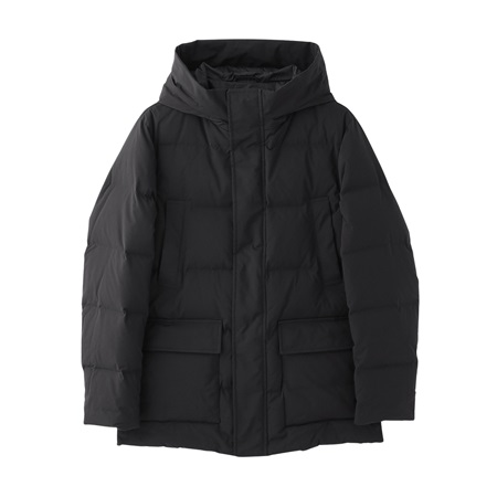 ストレッチメモリー素材を使用したダウンブルゾン、パーツによりダウン分量を調整し、スッキリとしたシルエットを実現しています。