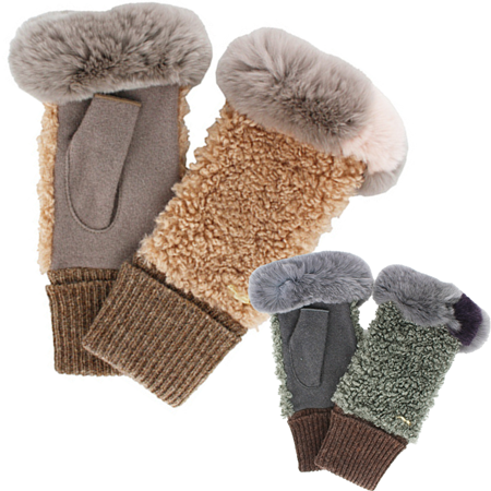 プードル調ファーにレッキスラビットのカラーブロックがトリミングされたミテーヌスタイル。 華やかに手元を彩るデザインになっています。