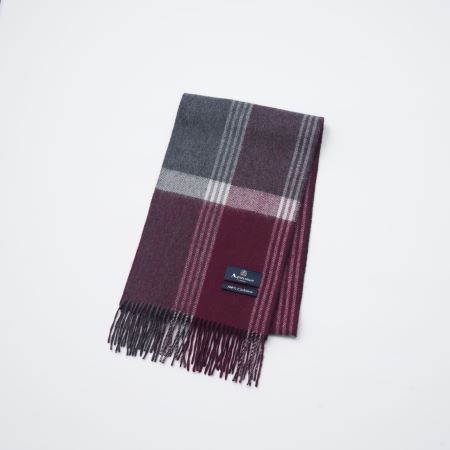 アクアスキュータムが誇るカシミヤ100%のマフラー。表はクラシカルなパネルチェック、裏はシンプルなソリッド無地のリバーシブル仕様で、巻き方次第で印象が自在に変化します。肉厚でボリューム感のある生地を程よい幅で織り上げ、使いやすさと上質感を兼ね備えた一枚です。