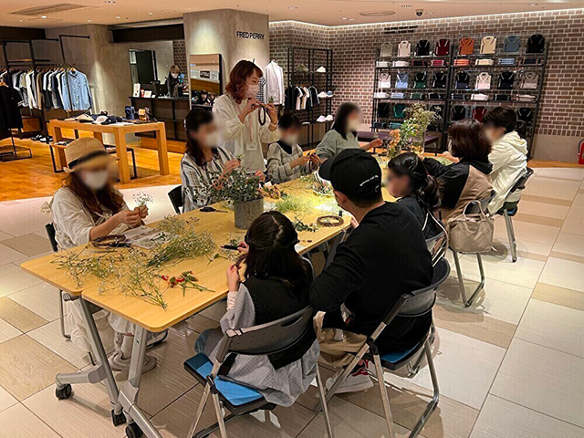 15日(土)は材木屋さんの廃棄木材を利用したコースター作り、16日(日)はロスフラワーを使用したインテリアリース作り、22日(土)は着なくなったTシャツをリメイクしたオリジナルエコバッグ作り、23日(日)は廃材を使用したリサイクルアート作りを実施いたしました。