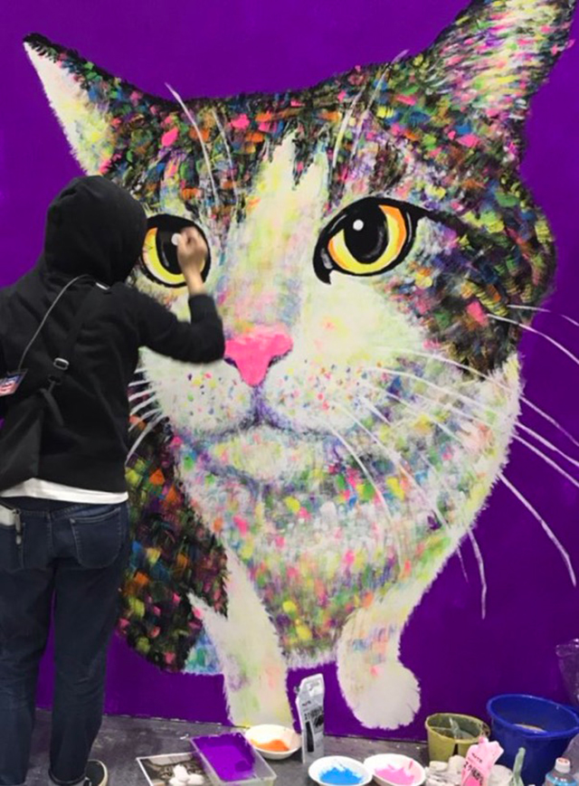 動物アートで人気のグラフィックデザイナー・Namikiさんと一緒に、カラフルなハリネズミの絵を描くワークショップ。