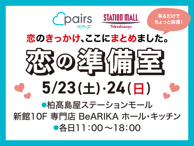 婚活コンサルのお悩み相談室や人気占い師による恋占い、マッチングアプリ「ペアーズ」会員限定の料理パーティーなど、あなたの恋活・婚活を後押しするイベントが目白押し♪