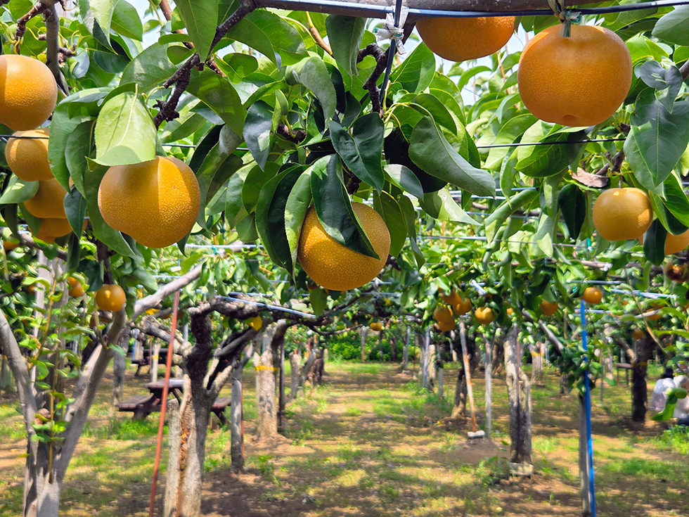 栽培している梨は日本梨(和梨)の代表格といわれる「幸水」、甘味と酸味が絶妙な「豊水」など7種類。
