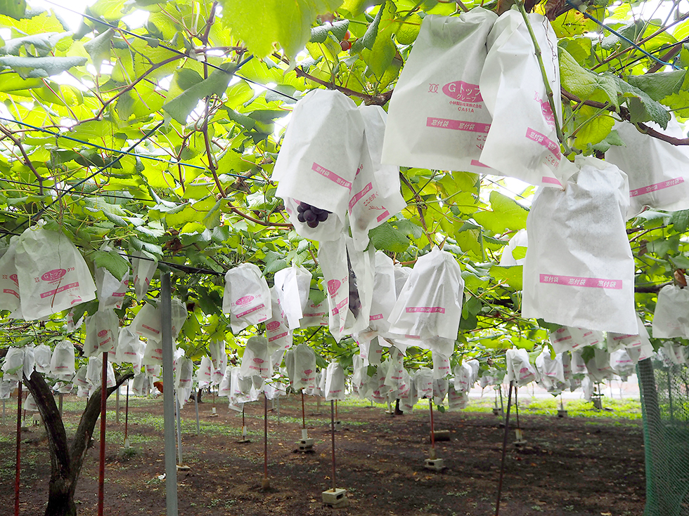 現園主は3代目の小川加代さん。初代園主である祖父が75年ほど前に始めた梨と、2代目園主の父が始めたぶどうとキウイフルーツを引き継いで大切に育てています。