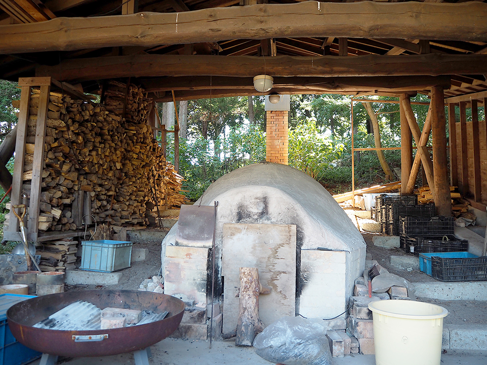 「薪となる雑木は市内で不要となった材を引き取って活用し、あけぼの窯で焼いた作品を『布施焼』という新たなブランドに発展させています。今日使った粘土もベースとなる陶土に“柏の土”をブレンドしたオリジナルなんです。地域資源を生かすことで、地元の良さを感じてもらえたら……」街中にあるのが貴重だといわれる穴窯は、炭焼きもできることから防災面でいざという時の備えにも。