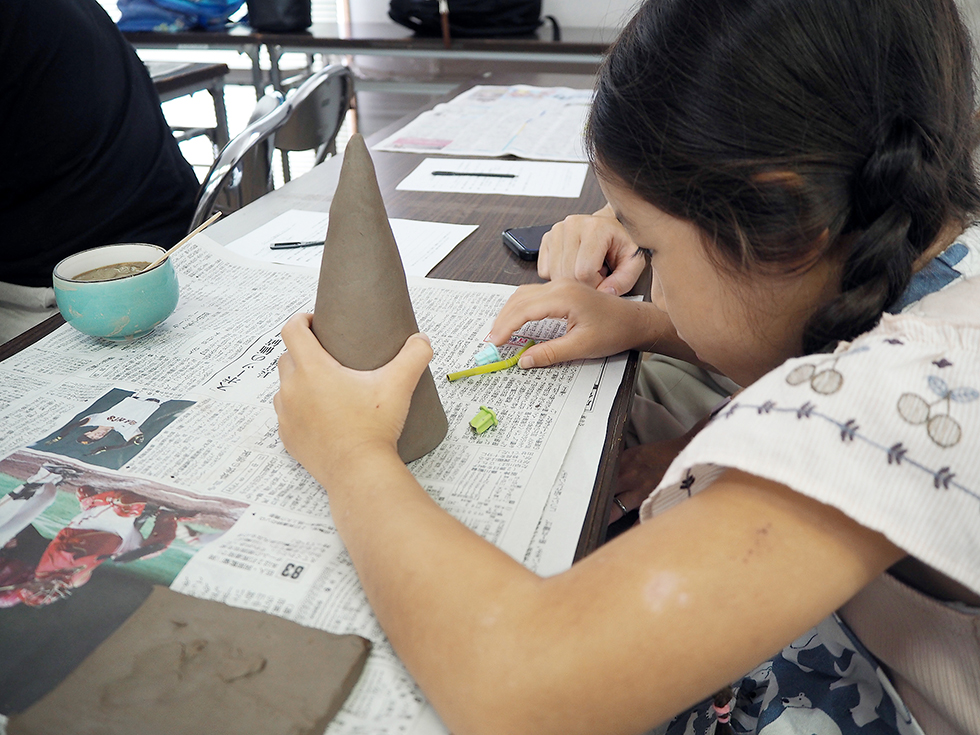 粘土が程よく乾燥していて、扱いやすくてありがたい。説明のあとは自由に創作タイムです。