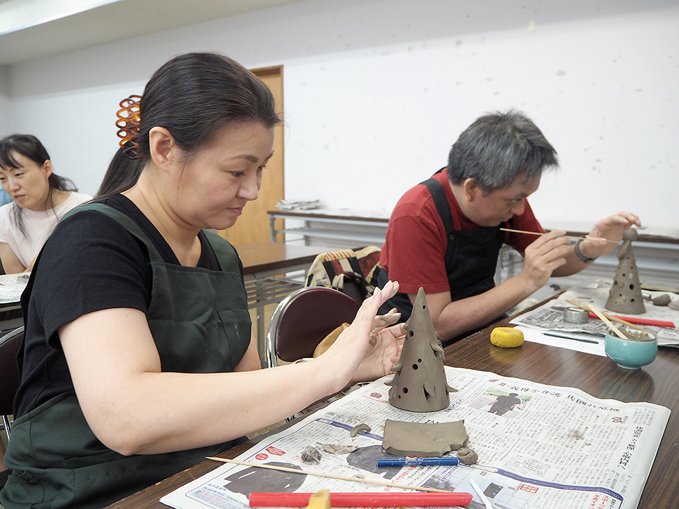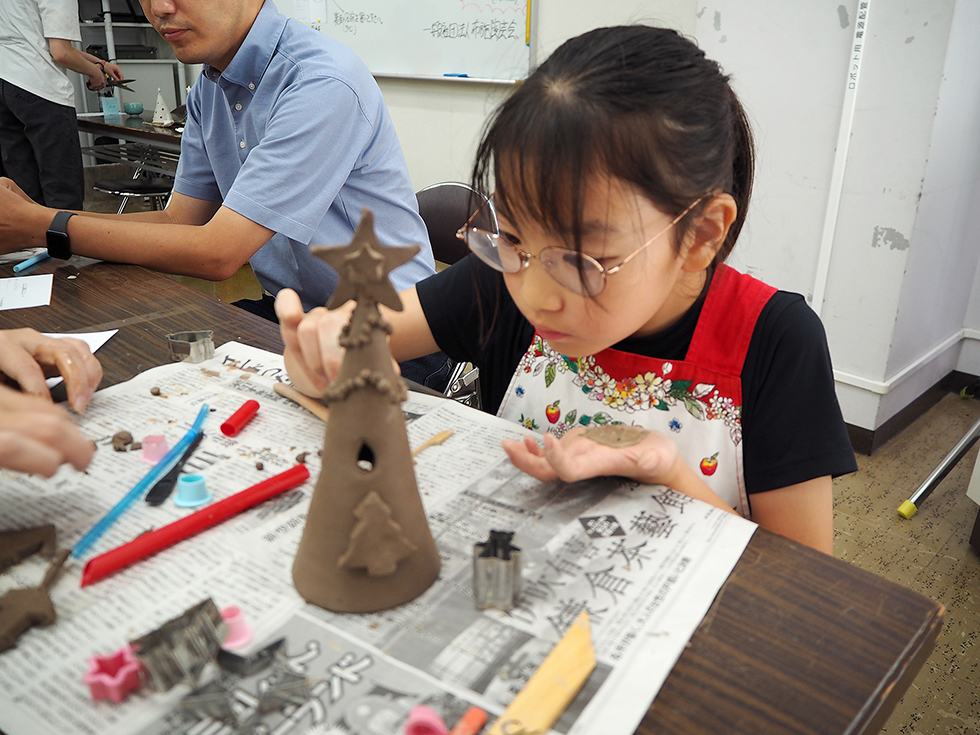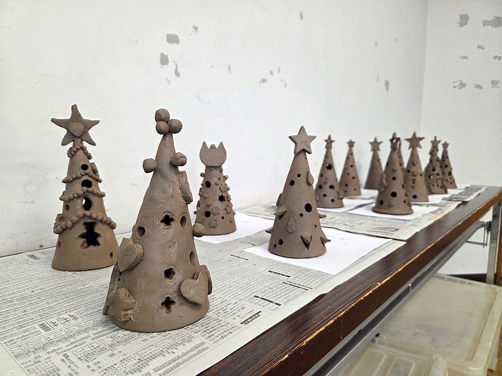 この日は公園内本館で、2024年から長妻さんら6人で運営しているあけぼの山陶芸教室の「焼き物で作るクリスマスツリー」ワークショップ。日ごろは公園内にあるスタートハウスで、初心者から経験者まで誰でも気軽に参加できる場を設けているそう。