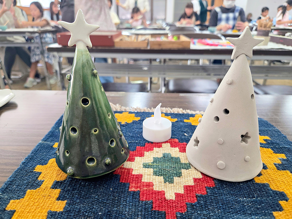 イベントでは2時間以内に陶器のクリスマスツリーを成形するため、先生方がツリーの土台を準備してくれていました。