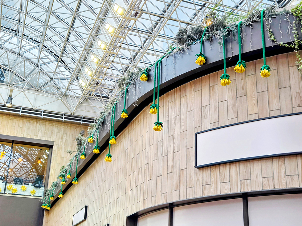 川上さんのInstagram(@wakako.kawakami)には、何と!「スタッフとともに夕方6時から夜を徹し、無事に完成の朝を迎えました」との報告が。美しい展示に至るまでの経緯を知って、感動。作品をもっと間近で見たくなって、誘われるようにモディ広場から2Fに上がってみることにしました。