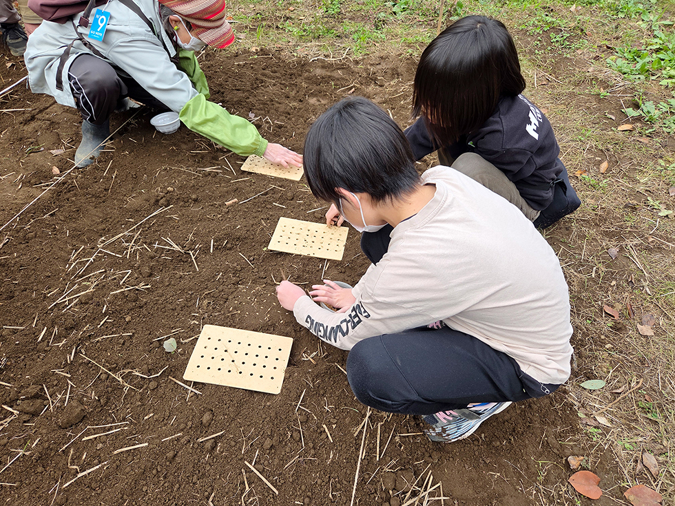 今日は手前の畝に、みんなで麦まき! 手順を聞いたらあとは各自で。まき方も丁寧だったり大胆だったり、個性があって面白かったです。