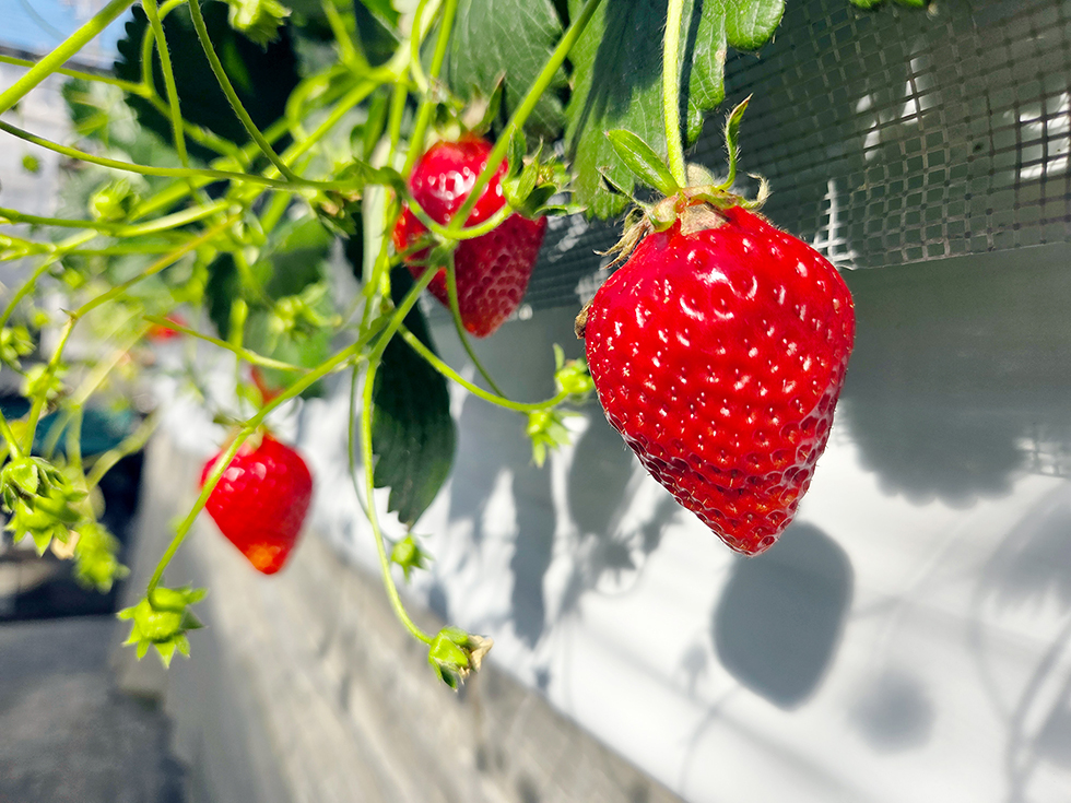 初夏の苗作りから真夏の遮光・暑さ対策を経て、系列の「及川いちご園」(松戸市和名ケ谷639)と合わせて、約13,000株を手作業で育てたとのこと。イチゴへの情熱が伝わってきますね。
