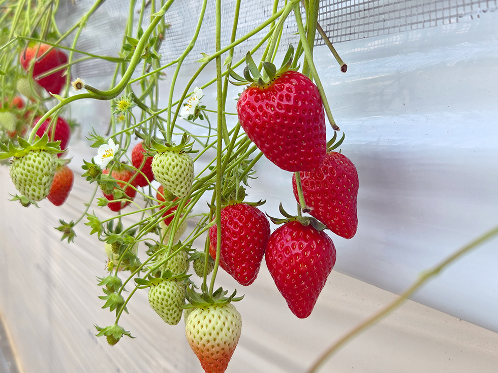「評判の品種は残しつつ、毎年新しい品種にも挑戦しています。今年デビューしたての珍しい味に出会えたと喜んでくださる方や毎年訪れてくださる方もいて、スタッフ一同うれしく思っています。食べ頃まで熟したイチゴの味は格別。ぜひ多くの人に楽しんでもらいたいです」と、及川さん。