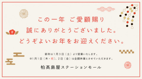 2026年1月1日(木・祝)・2日(金)は全館休業