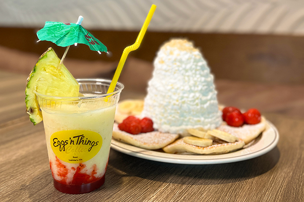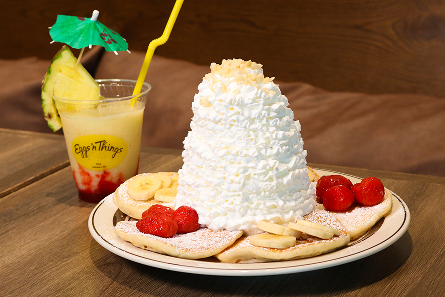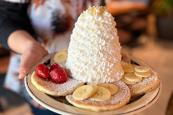 真っ赤なストロベリー×ミルキーホワイトのホイップクリーム…この華やかな見た目は春のウキウキ気分にぴったり!環境が変わって新しくできたお友だちとのイップクや、ご家族での春のお出掛けのカフェタイム、あるいはバースデーパーティーのケーキがわりに、ハワイ生まれのトロピカルなパンケーキ、お勧めです! (by S店長)