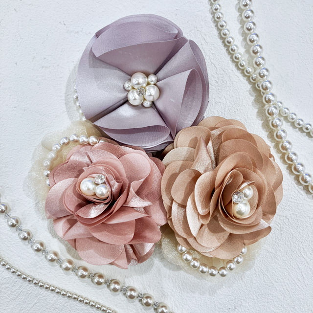 オセワヤでは、スカートスタイル・パンツスタイルどちらでも使いやすいコサージュを多数取り揃えております。