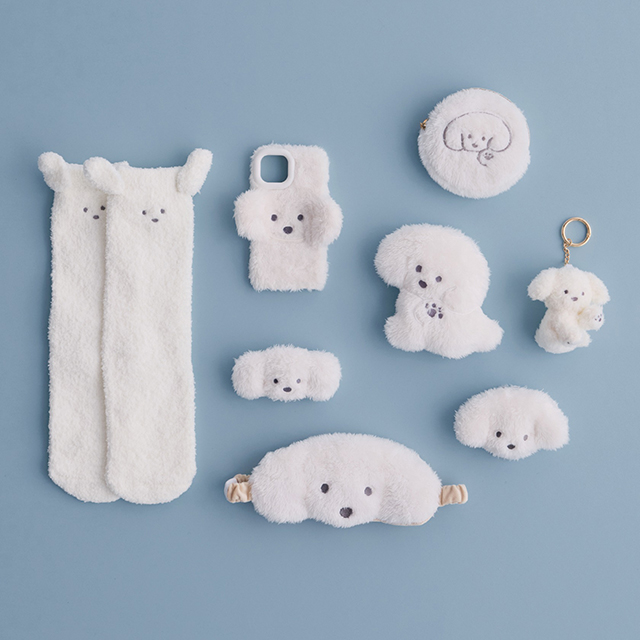 人気イラストレーター・てらおかなつみさんが描く、真っ白でふわふわないぬたちがもこもこアイテムになりました。