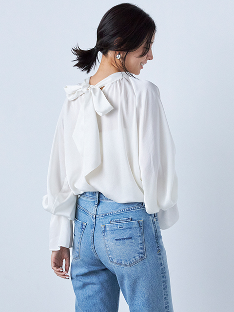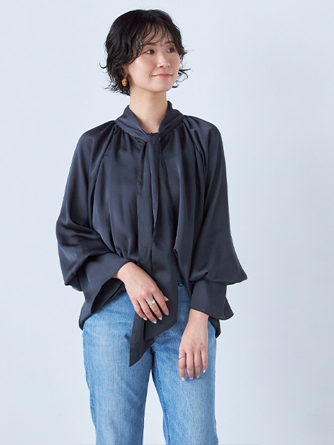 ■ボウタイブラウス(ホワイト・チャコールグレー) 各30,800円