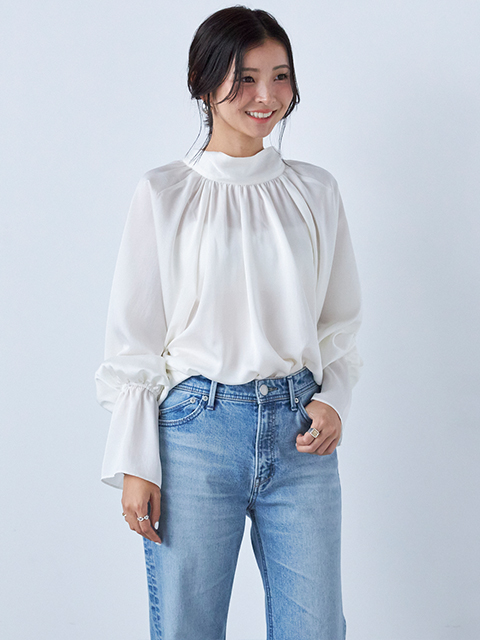 ギャザーをふんだんにいれることで女性らしい印象にしました。
