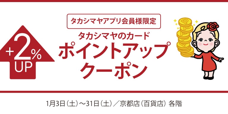 ※高島屋オンラインストア、高島屋コスメサイト「TBEAUT」、タカシマヤファッションスクエア、高島屋ローズキッチン、タカシマヤ通信販売はポイント対象外となります。