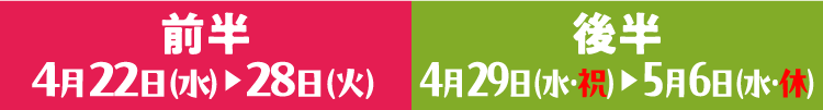 4月29日(水・祝)〜5月6日(水・休)の販売