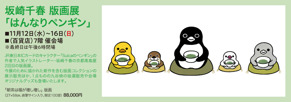 ※一部商品の入荷遅れ・生産中止や、展覧会・催し・イベント等が変更・中止となる場合がございます。